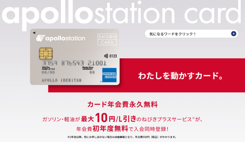 「apollostation card」は、apollostationでガソリン代が割引価格になるお得なカードです。
