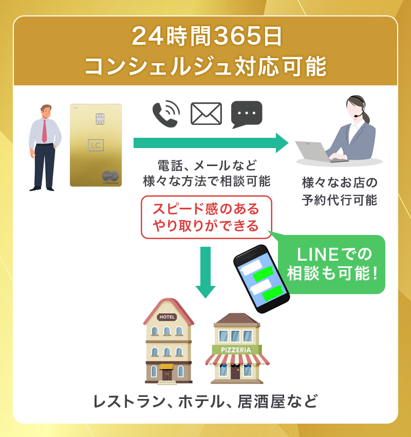 ラグジュアリーカード(法人)会員は、専属秘書のようなコンシェルジュサービスを活用できます。このサービスは、時間と場所を問わず24時間365日徹底サポートを提供し、ビジネスの効率と質を大幅に向上させる役割を果たします。