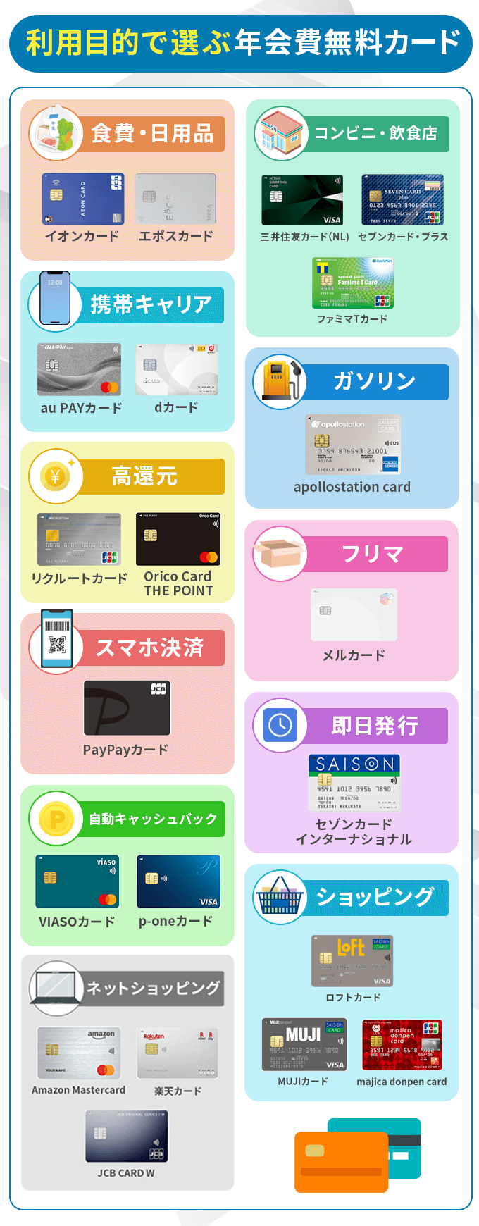 - 1 年会費無料のクレジットカードは利用目的から決める