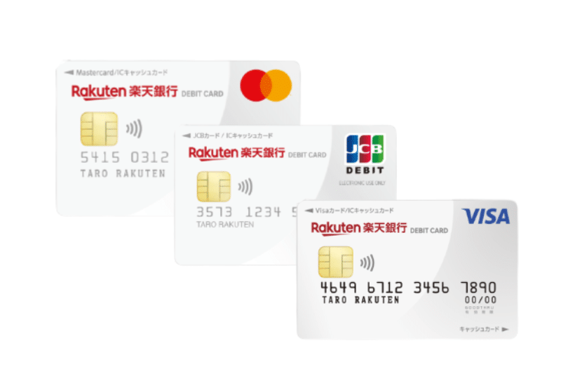 楽天銀行では、Visa、JCB、Mastercardの国際ブランドに対応した3種類のデビットカードを提供しています。