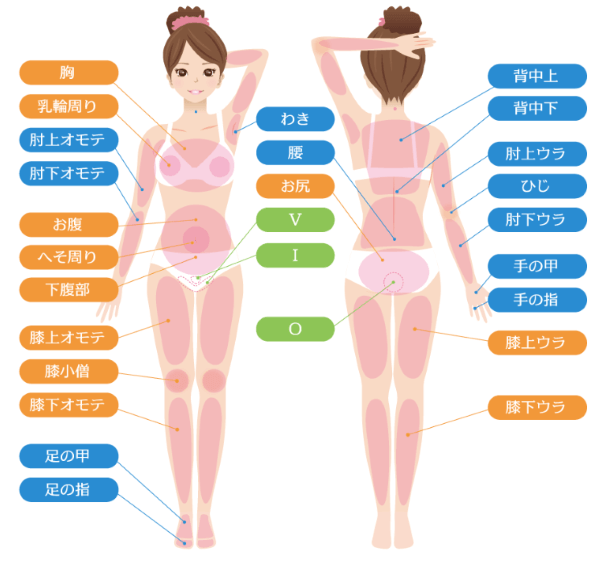 | ※対象範囲:両肘下、両膝下、手の甲指、足の甲指、両脇、背中、腰 | |