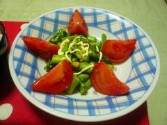 ドレッシングには、ありきたりですが、マヨネーズを使用しました。マヨネーズは、グリーンアスパラガスとの相性抜群です。