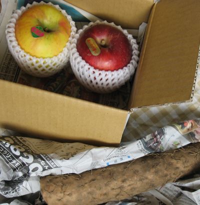 この度は、『信州なかの北原農園キャンペーン』の『秋堀新長芋の切れ500~800g+名月1玉+あいかの香り1玉』に当選させていただき、有難うございました。