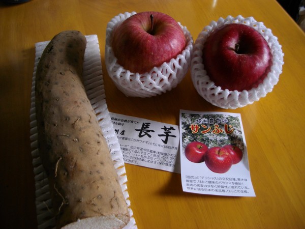長芋が1本、サンふじのリンゴが2個届きました。