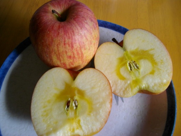 リンゴを切ると、真ん中に 蜜が タップリあり 、それを見ただけで このリンゴのおいしさが分かりますね。