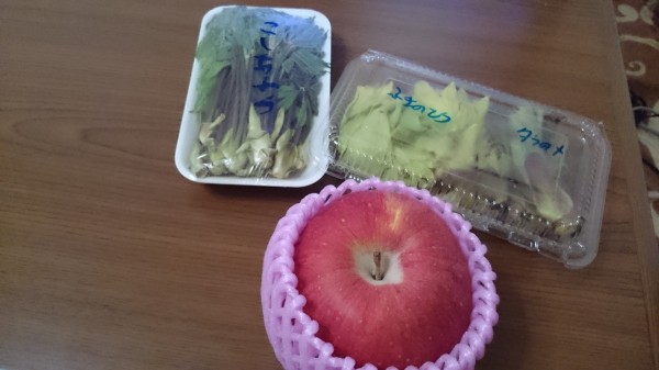当店のお勧め山菜+特別貯蔵のりんごのセットをご縁があり、いただきました♪ 普段山菜を食べる機会...