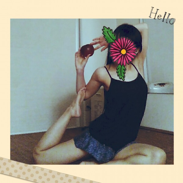いきなりですが、ヨガの鳩のポーズをしてみました。持っているのはりんごです。(笑)