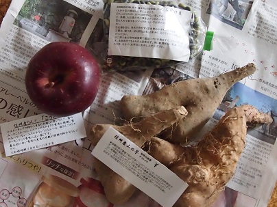 信州なかの 北原農園さんからの山の芋500〜600g位、くらかけ豆200g1袋、品種おまかせリンゴ1玉が我が家...