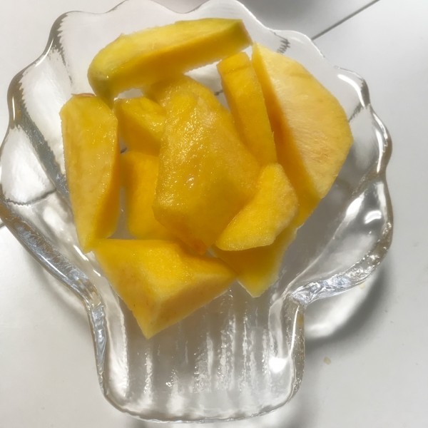 切った直後は綺麗な黄色で少し硬めでサクサクとした歯ごたえでした。