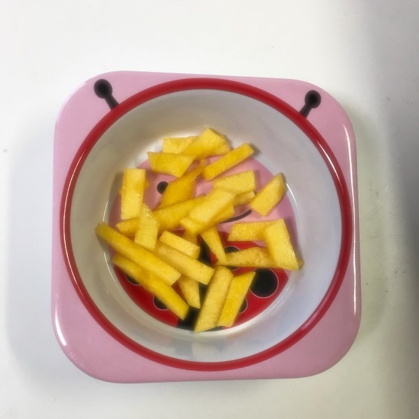 手を汚しにくいので離乳食時期の娘にも小さく切ってあげました。