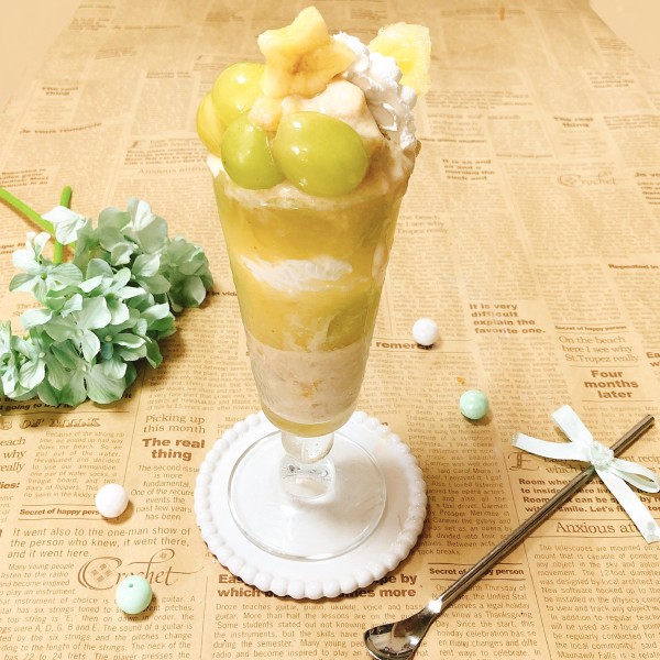 バナナがあったから、バナナミルクアイスを作って、マスカットでもシャーベットを作って、パフェにしたよ ✧˖°なんて、豪華なかわいいパフェ??₍ᐢ。•؎ •。ᐢ₎