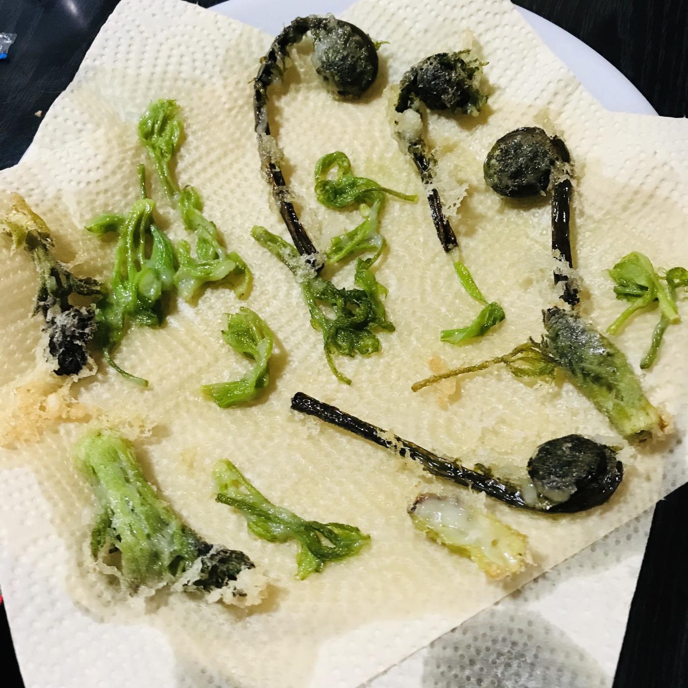 コゴミはほとんどアクはなく、お湯にくぐらせるだけで良い。見ためはぐるぐるとしていて印象的ですが、さっぱりしているのと、オクラのようなちょっと粘りがある感じ。