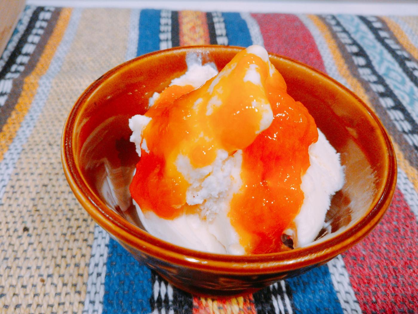 出来上がったジャムはパンにつけたり、パンケーキにかけたりしたけど、バニラアイスにかけて食べると酸味と甘味とクリーミーさが合わさり極上デザートになりました!