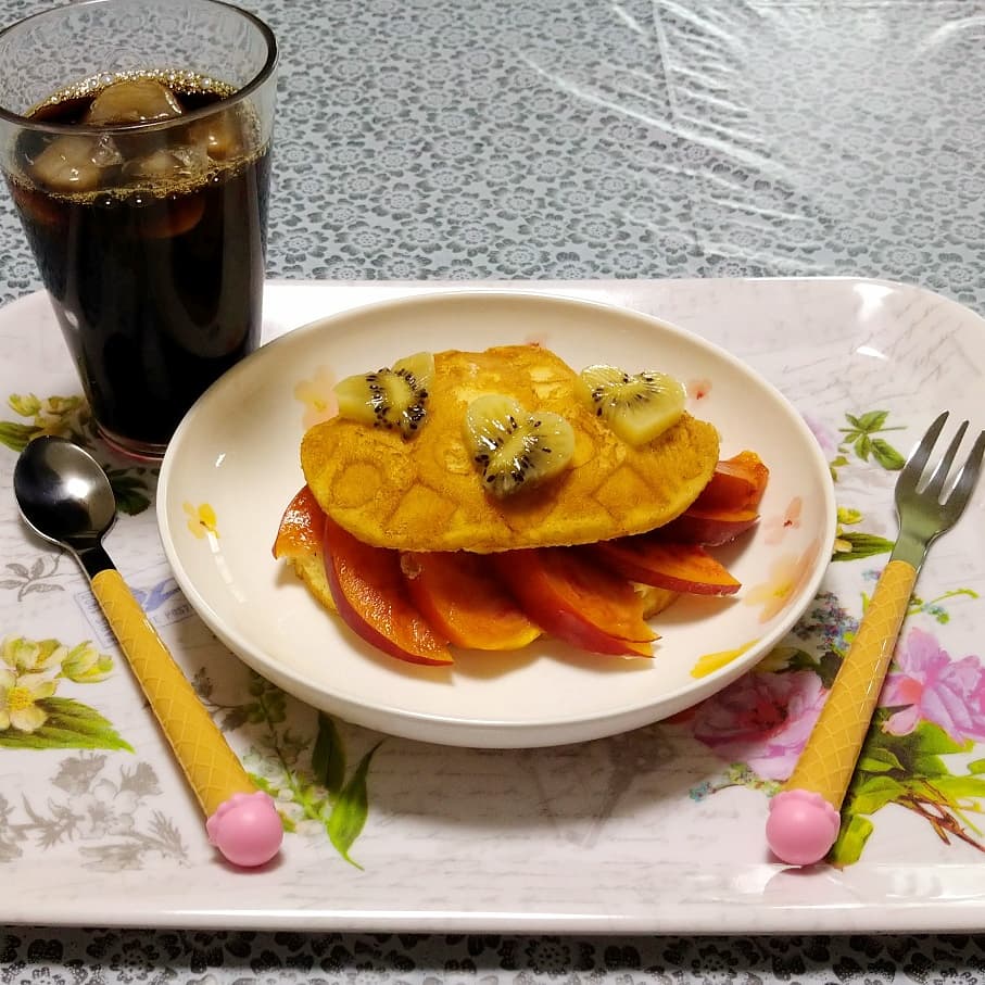 ワッフルの上にカスタードクリーム、スライスしたワッサーを乗せ、ワッフルで挟むだけ??