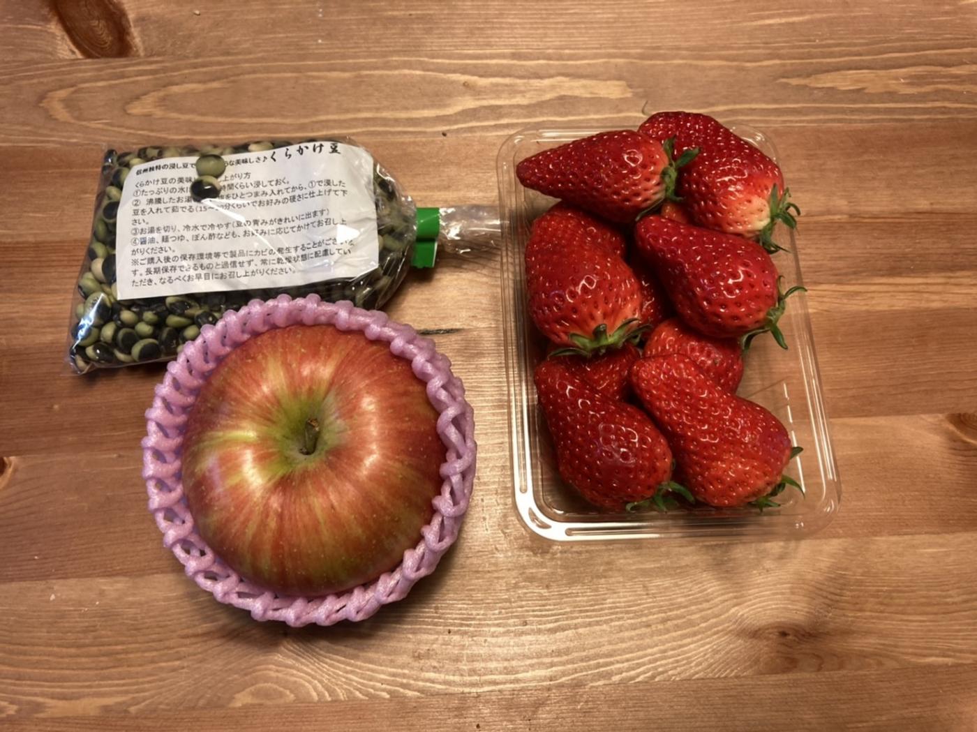 おまかせリンゴ1玉・くらかけ豆200g・あきひめイチゴ300g