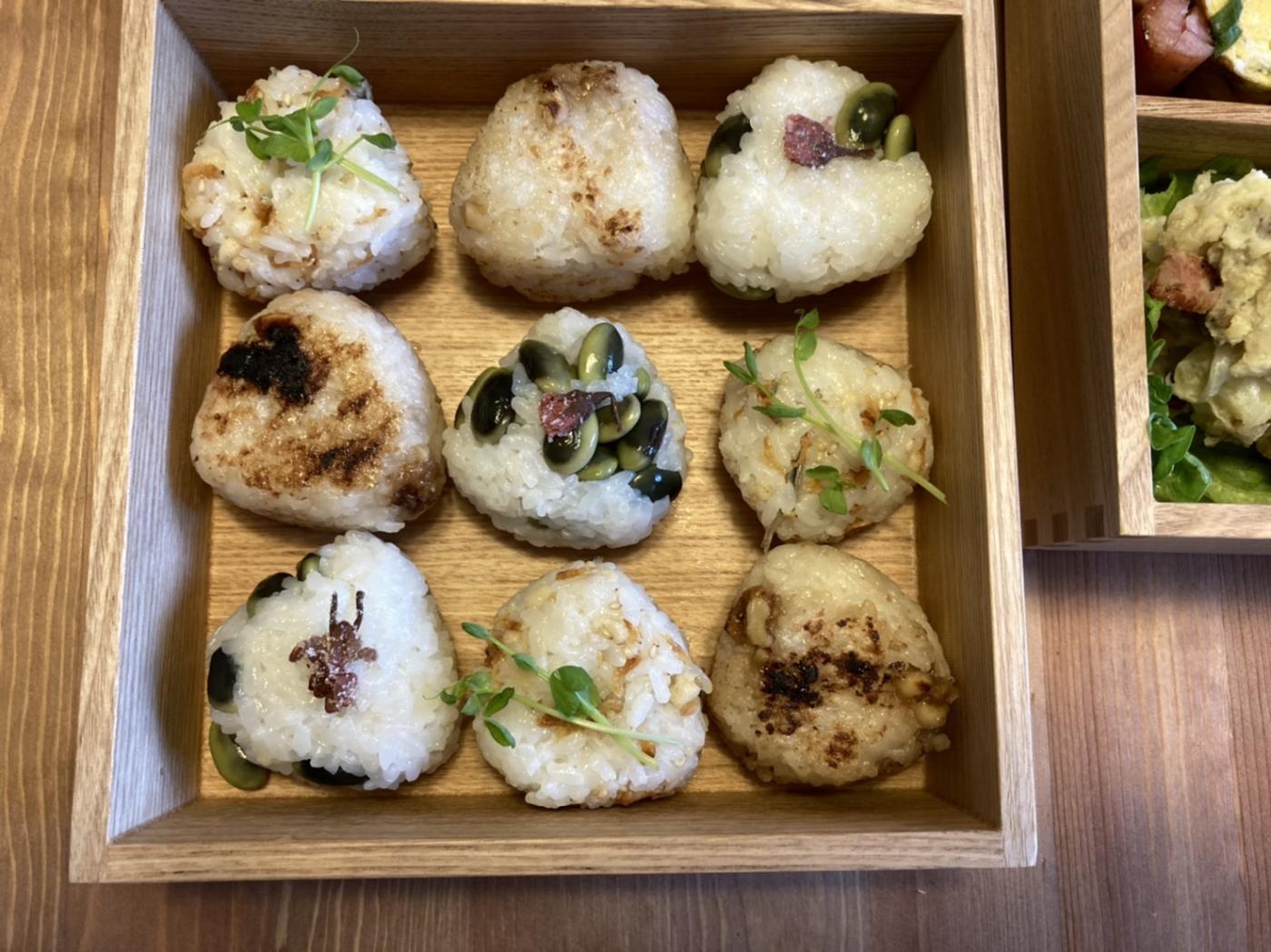 次に残りのくらかけ豆を使って、まめご飯のおにぎりとポテトサラダを作りました!