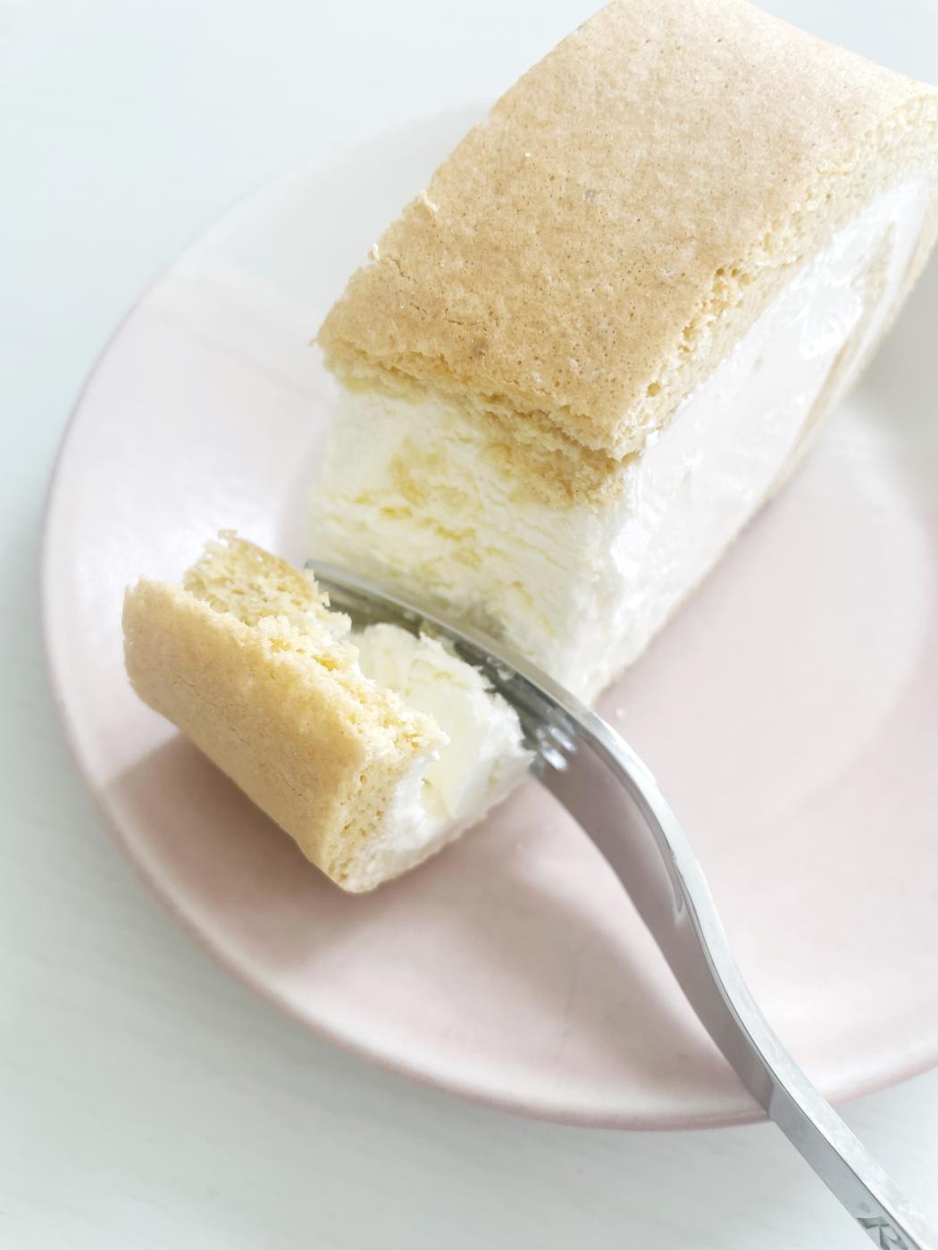 冷蔵庫で1日解凍するのが食べ頃ですが、私は半日解凍のアイスケーキ風も好きです。