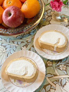 ふわふわのスポンジもクリームの部分も甘さは控えめながら、うん、おいしいロールケーキ♪