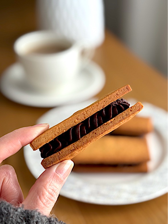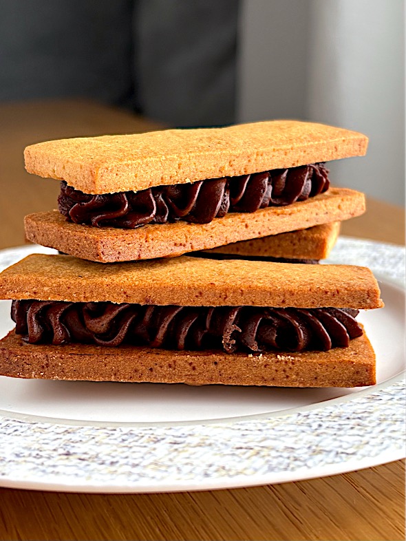 そのクリームと相性のよい、一枚でしっかりと食べ応えのある厚焼きのクッキー生地。サクサク感よりも「しっとり感」を感じます。クリームとの一体感が生まれるクッキー生地でした。甘さは極限まで控えめに。だからこそ、素材の魅力が際立っていたようにも思います♪