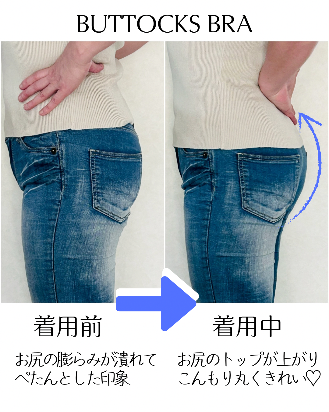 後ろ姿や横向き姿に立体感が出て、パンツやスカートのラインがきれいに決まり、目に見えて効果が分かりやすいよ✨☺️✨