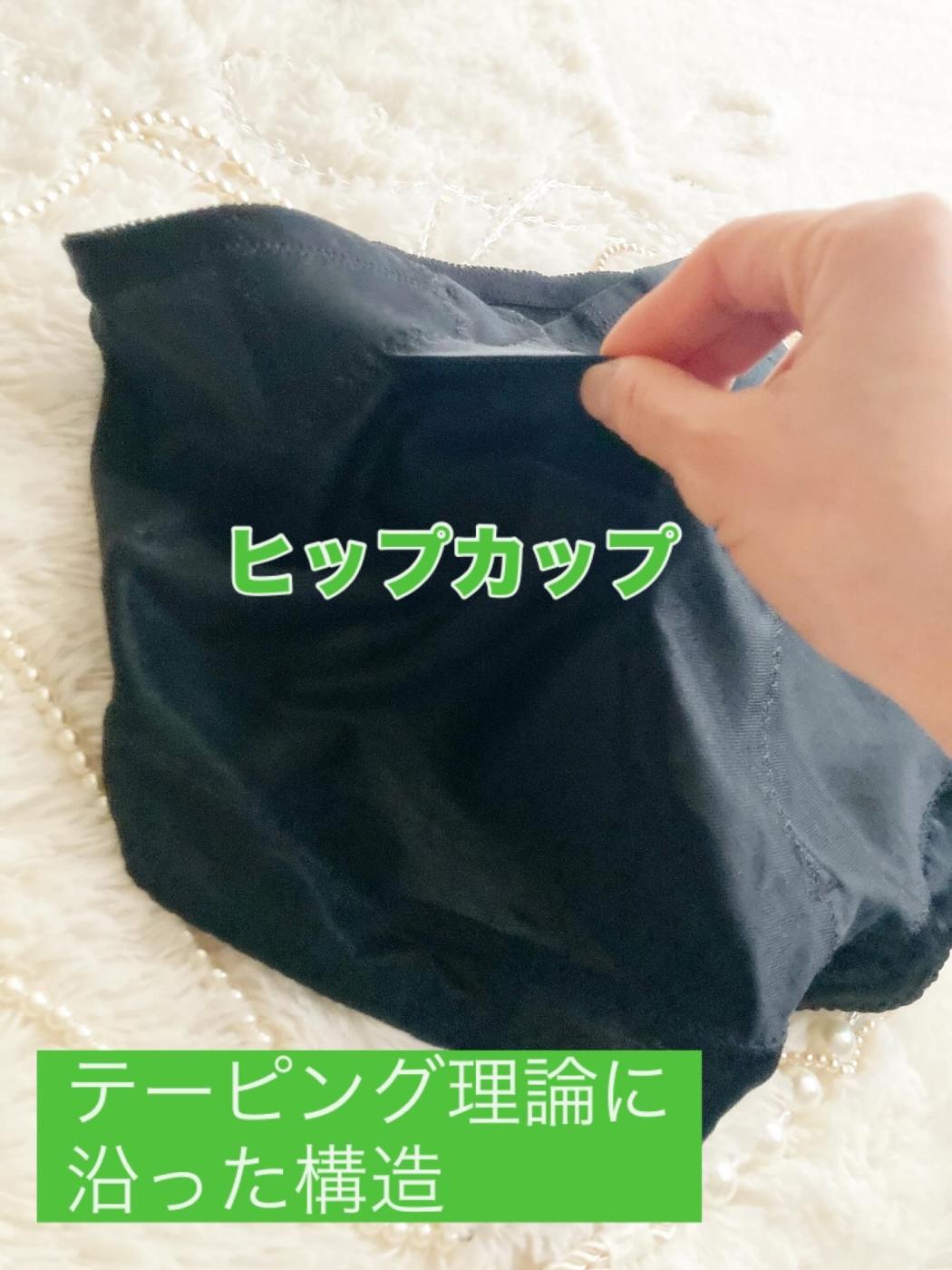 🔸特許構造のヒップカップにより、お尻の山が二つに分かれ、自然に持ち上がる形状を実現。