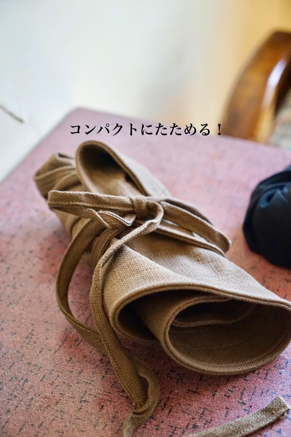 くるっと丸めて、風飛び防止ヒモで巻くだけ〜