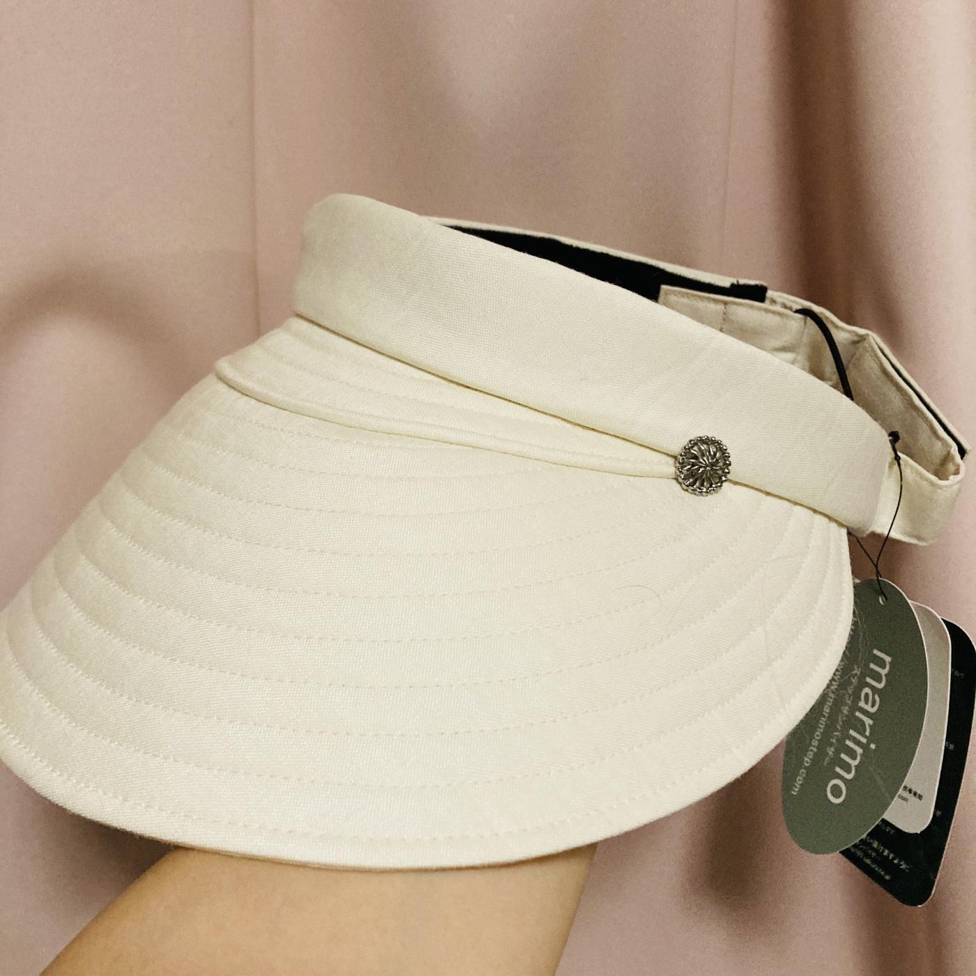 ベージュの生地はシンプルでワンポイントもオシャレですね。つばがすごく大きいので影になる部分が広いから、自転車に乗る時や散歩時に大活躍。これがあれば、よけいな日差しを浴びなくて涼しくてとてもいいですよ。プレゼントにもいいと思います。「marimo ステップサンバイザー」、チェックよろしくお願いいたします。