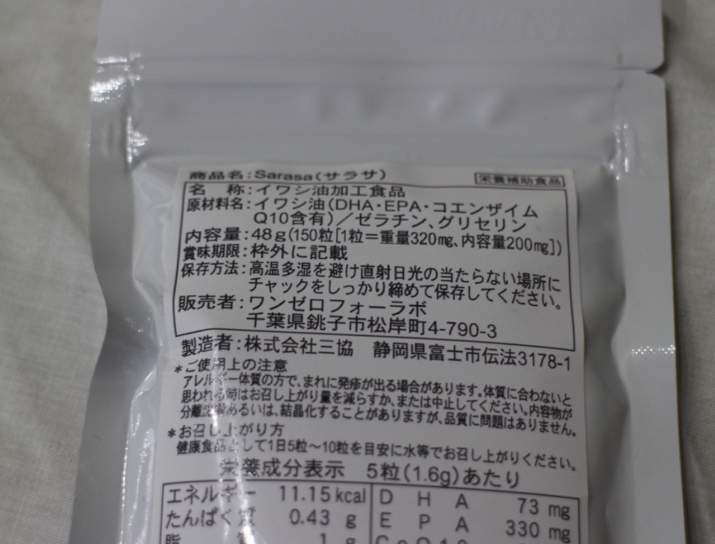 DHA&EPA&イワシ油 サプリメント Sarasa サラサ150粒|モニター りんりんさん
