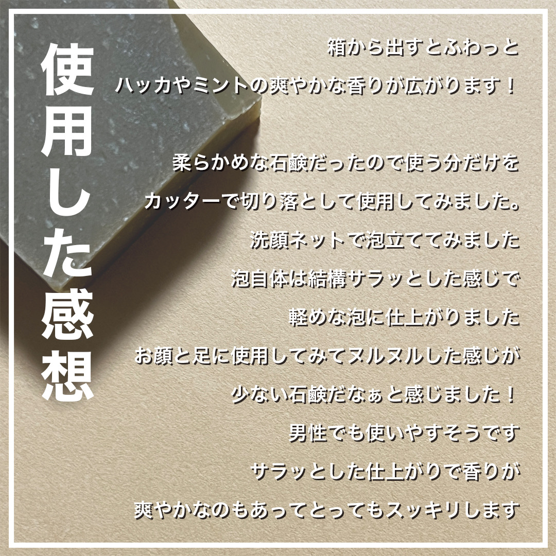 お顔と足に使用してみてヌルヌルした感じが少ない石鹸だなぁという感じ!