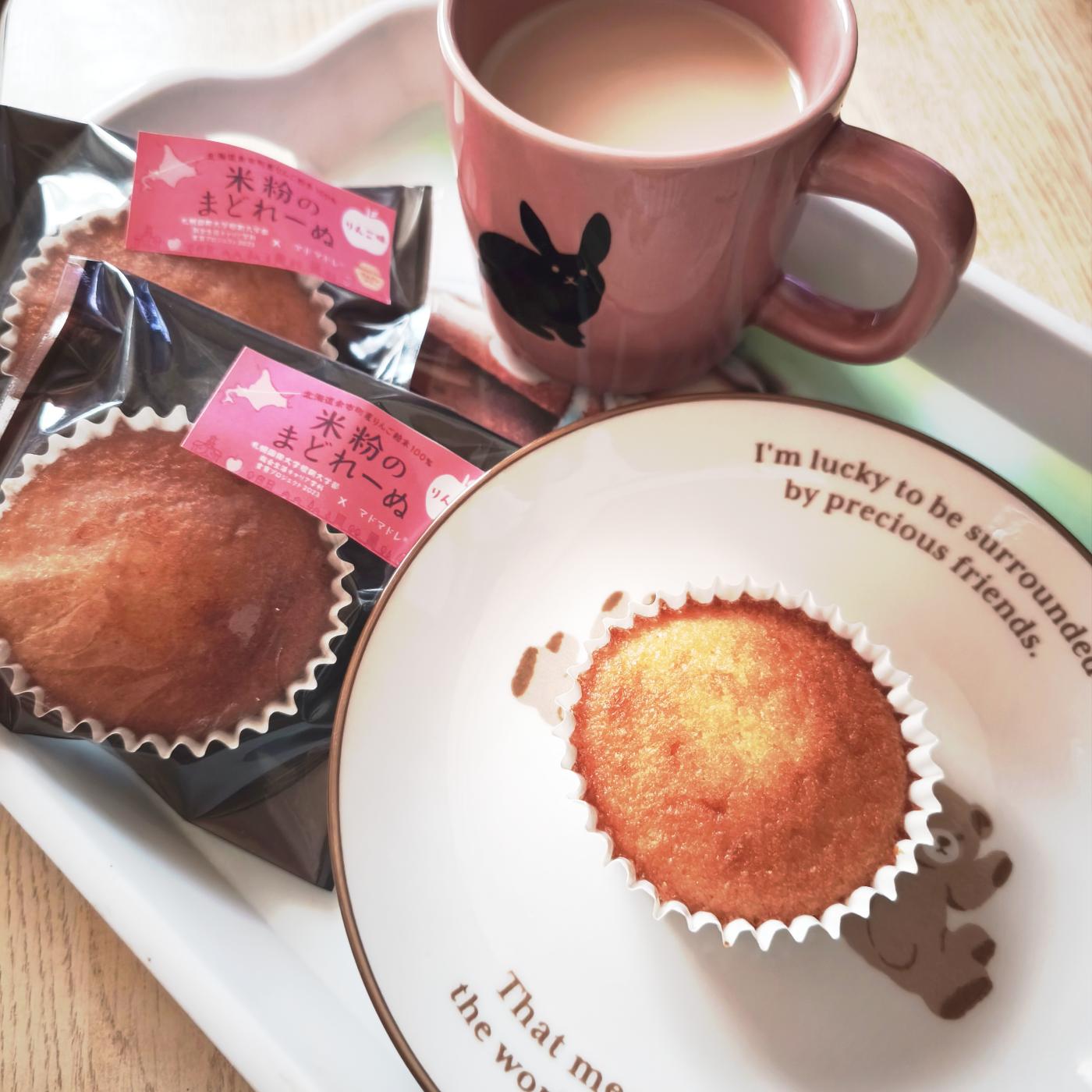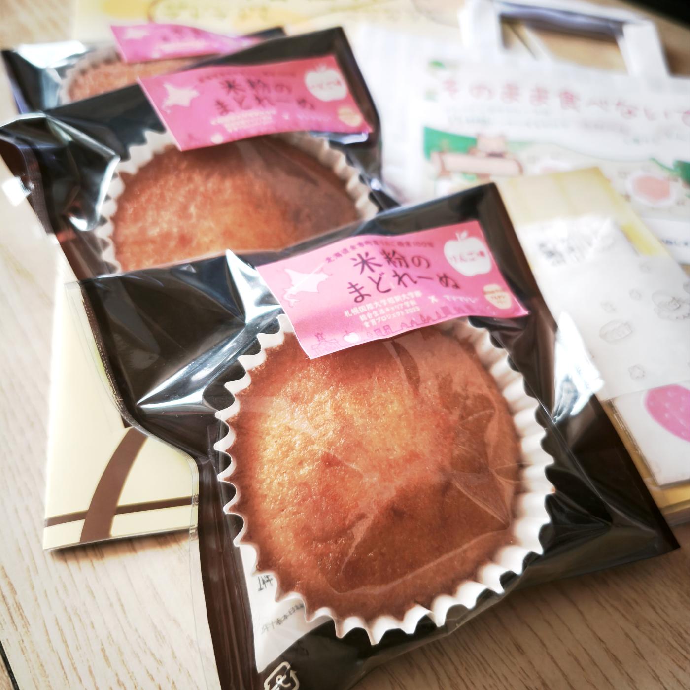 ちなみに原材料の米粉、バター、砂糖、牛乳、タマゴ、蜂蜜、りんご粉末は北海道産100%使用。北海道にこだわりぬいたマドレーヌみたいですよ🍎