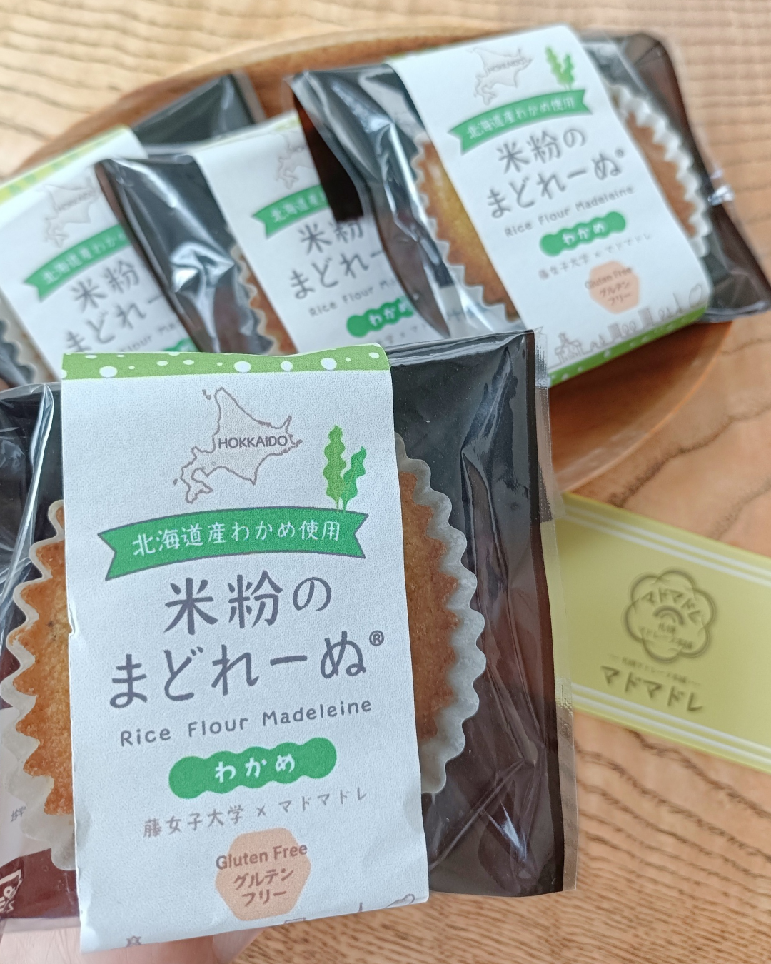 \北海道産のわかめが入ったマドレーヌ/ 「わかめ味米粉のまどれーぬ 4個入」