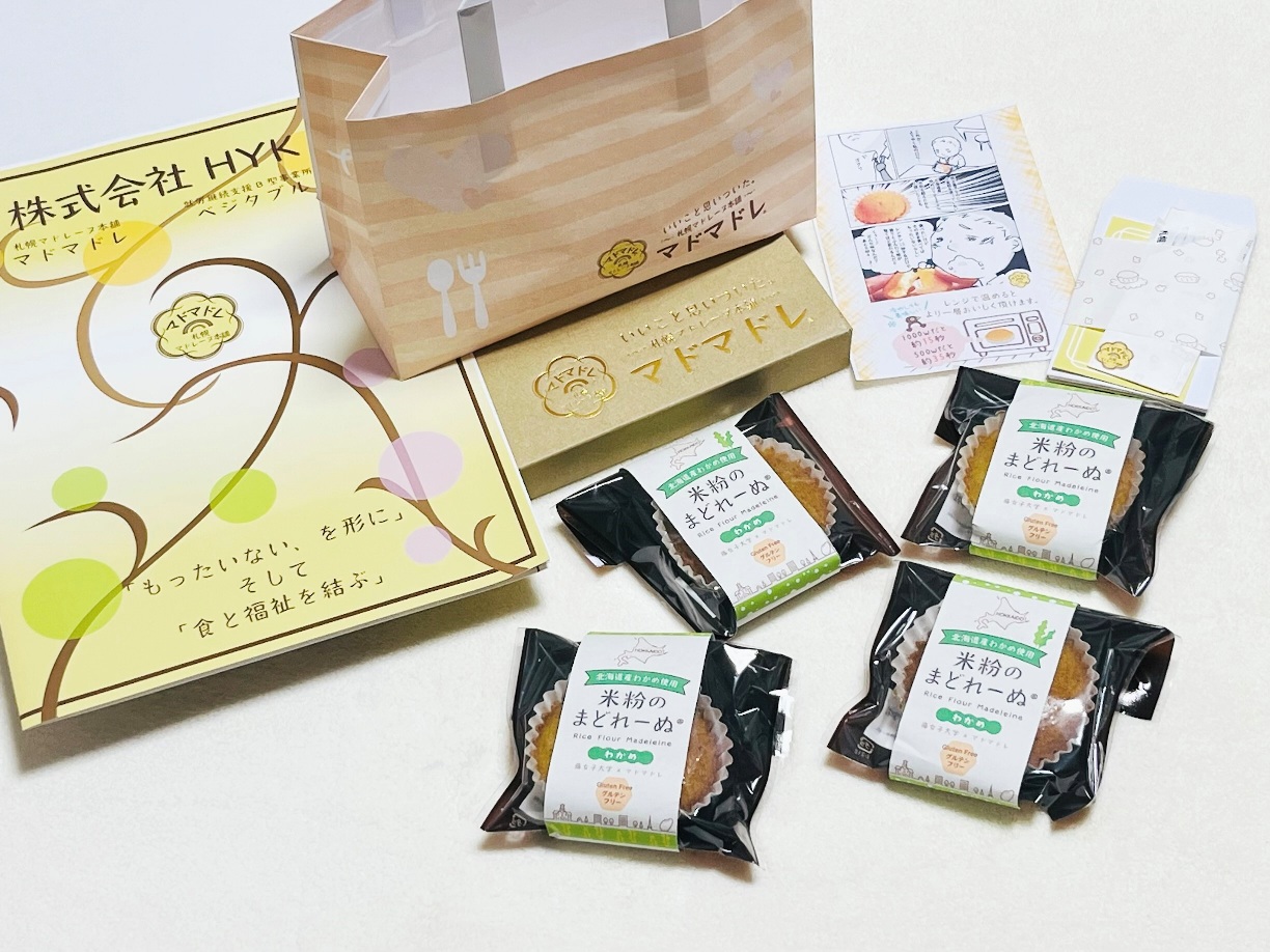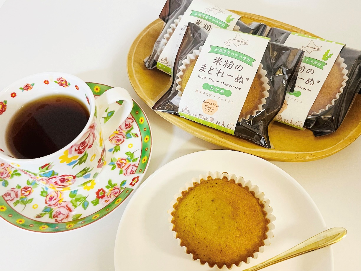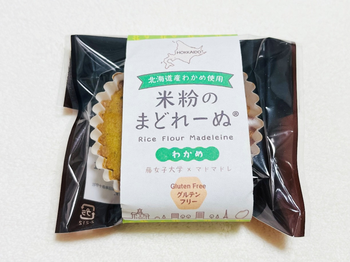 わかめ米粉のまどれーぬは、札幌マドレーヌ本舗マドマドレと藤女子大学の共同開発商品です。