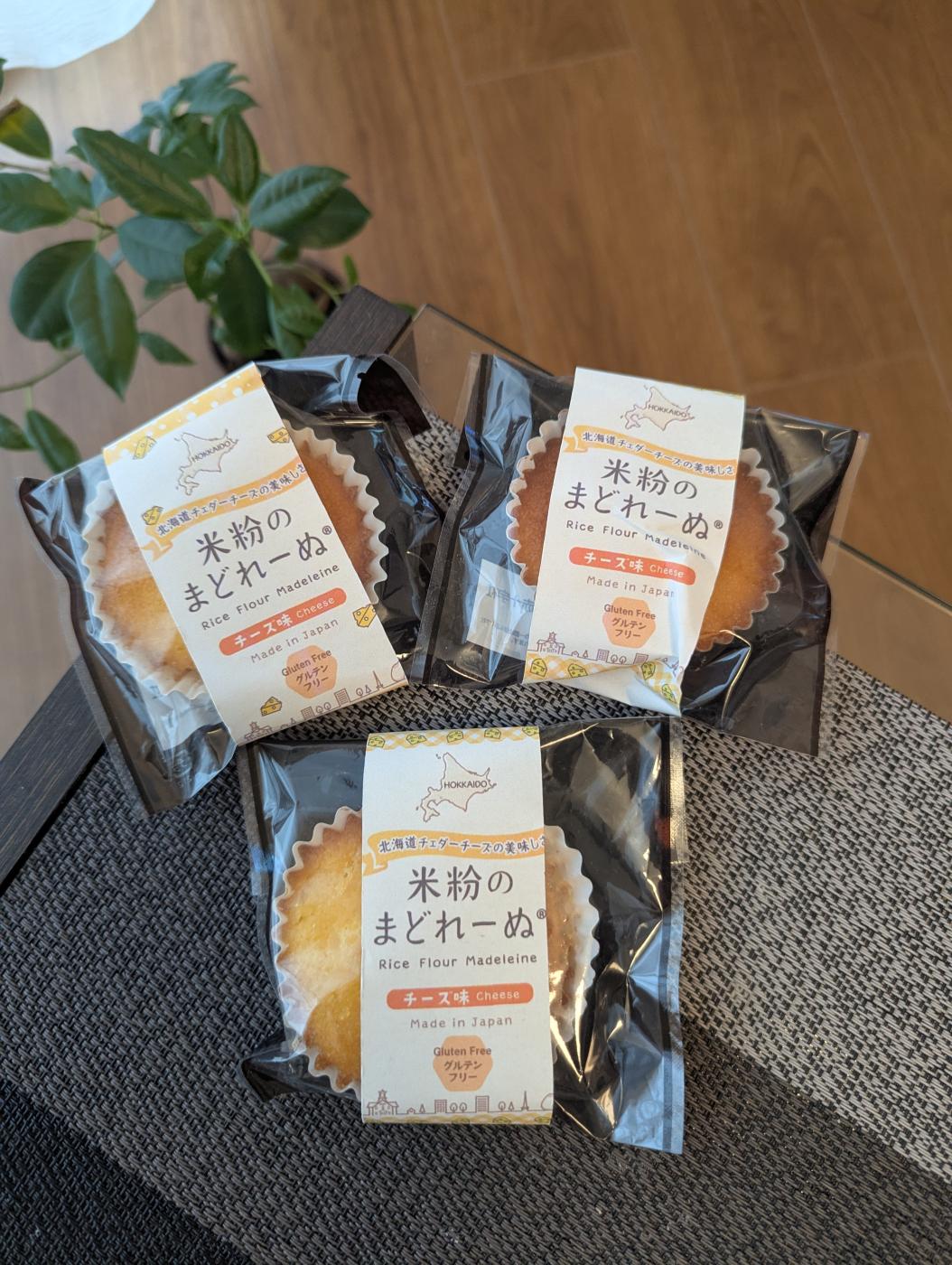 米粉マイスターが監修した小麦粉不使用のグルテンフリー商品で、原材料の米粉は、自社製粉した北海道産「ゆめぴりか」100%米粉を使用、バター・砂糖・牛乳・蜂蜜・タマゴも北海道産を100%使用というマドレーヌ!