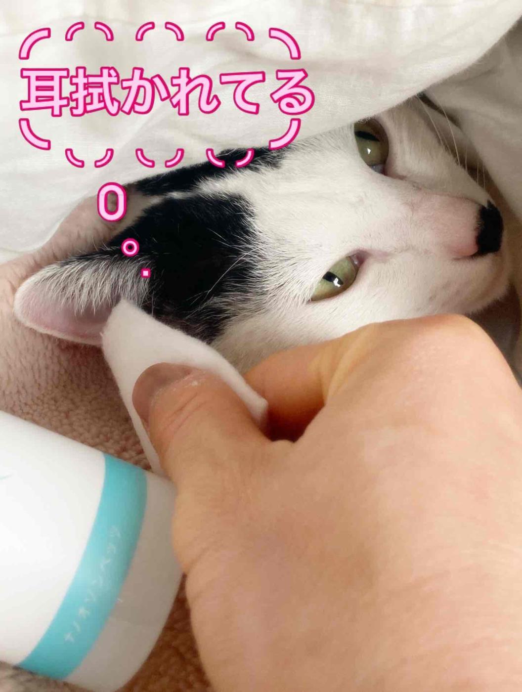 寒くてお布団から出てこない警戒心の強い猫ちゃんですが、無香料で刺激がないため、嫌がることなくスムーズにお手入れさせてくれました。