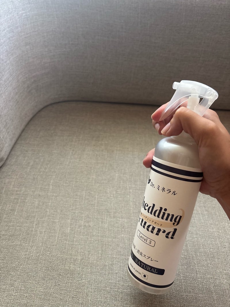 アルコール、界面活性剤、防腐剤も配合されていないので、愛犬のベッドにも早速使用。使った感じの香りもないし、べたつき感もないので使いやすいと思います。