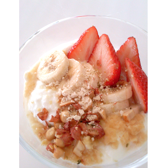 ヨーグルトにソイプロテインをたっぷり入れたらクリーミーでまろやか。