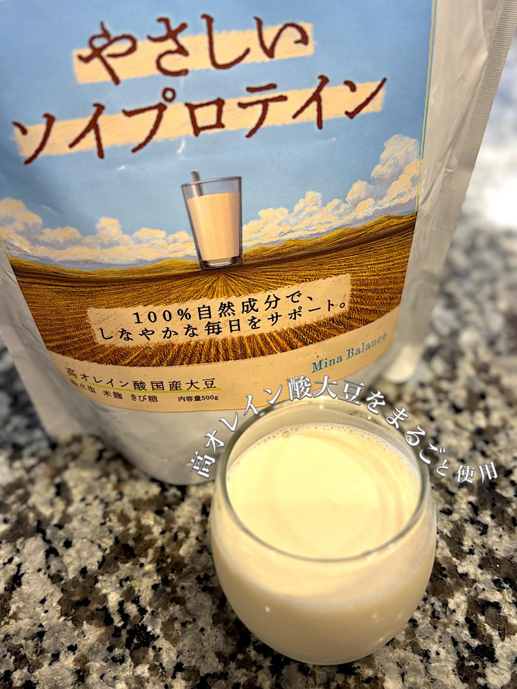 原料は、オレイン酸の多い国産大豆に、喜界島きび砂糖、海水塩なぎさ、米麹だけのプロテイン。