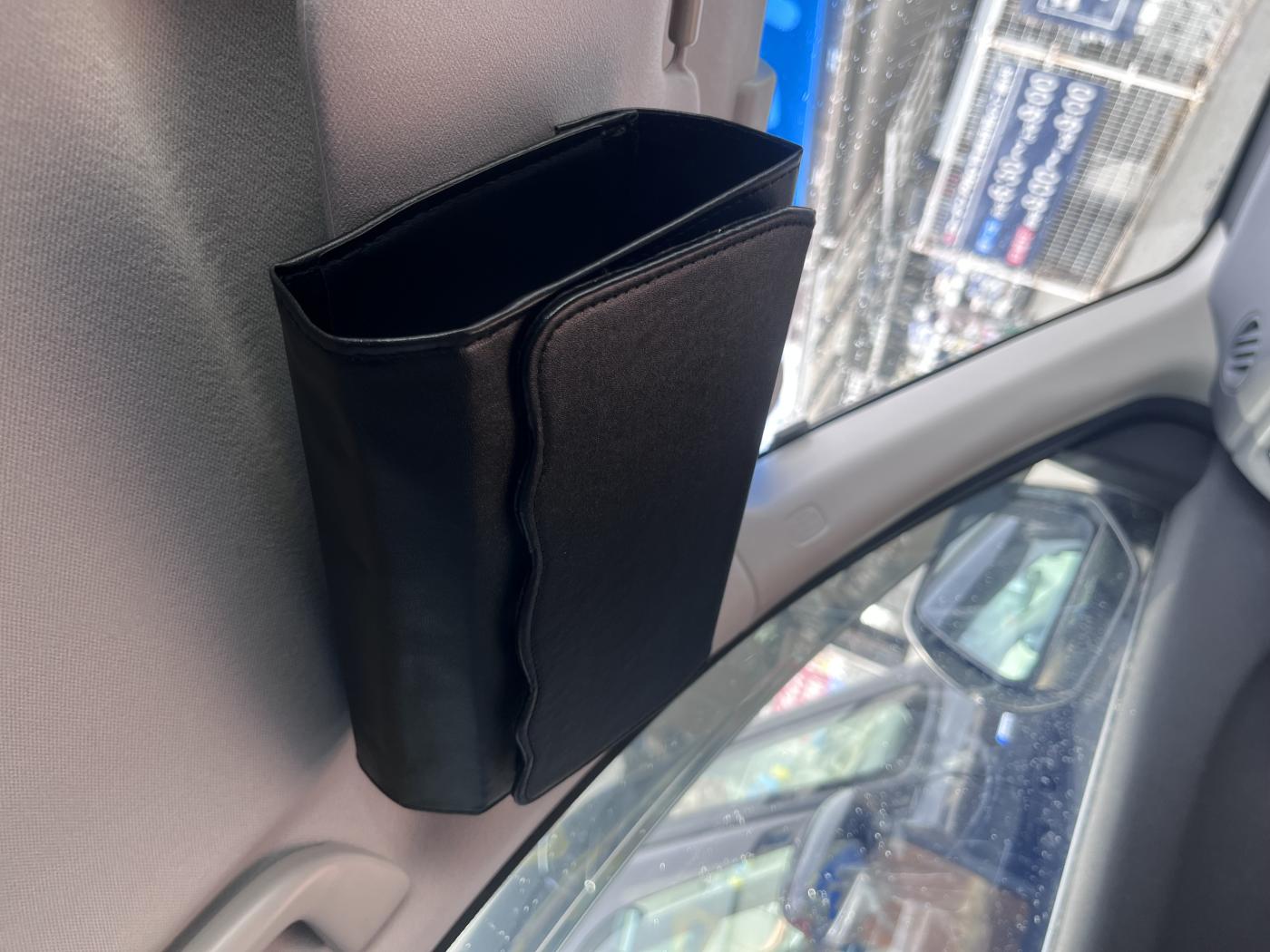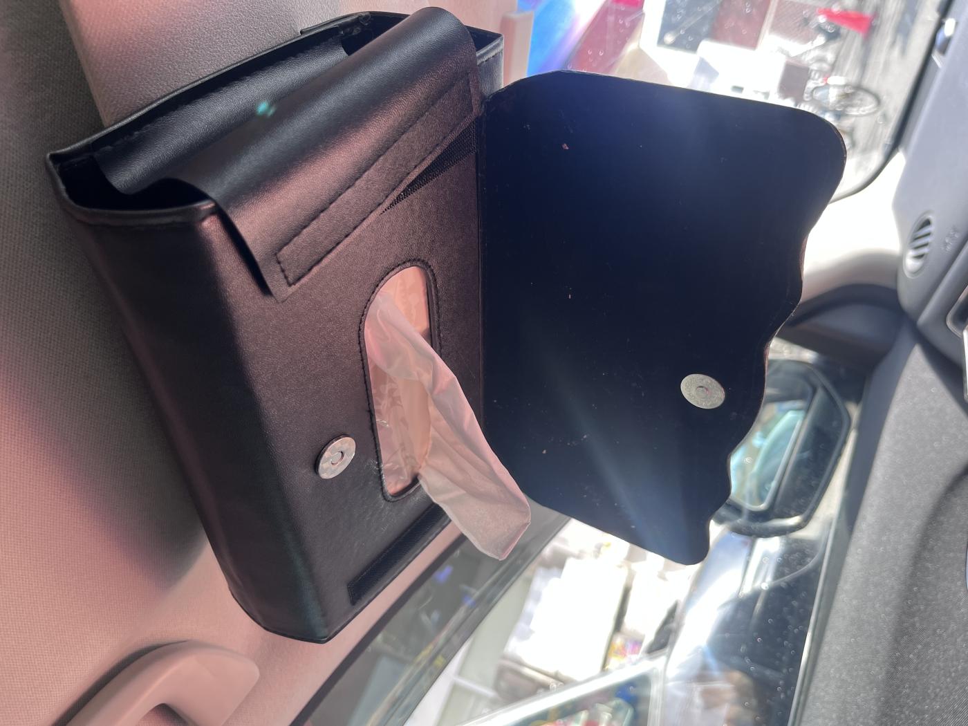 スナップボタンで開閉がすごく楽で運転席からも片手でティッシュを出せるところが良かったです。また、ティッシュのペラペラするのも隠せるので気に入りました。箱ティッシュがそのまま入るので、とても便利です。ただ、ミラーと被ってしまうので、そこだけが少し残念でした.