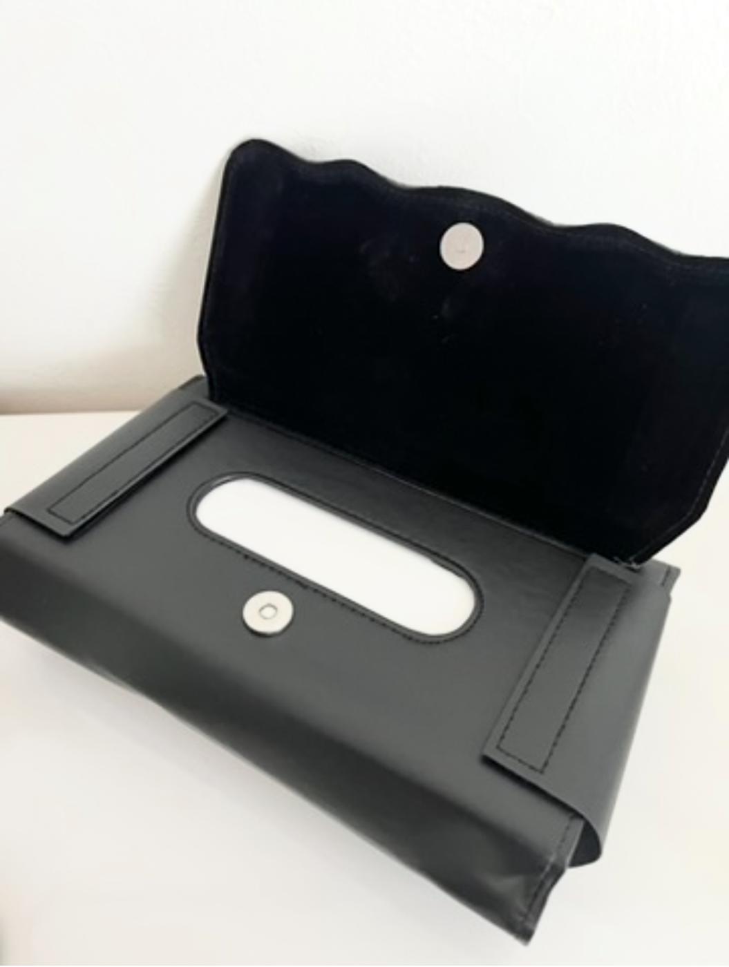 無駄な装飾のないシンプルなデザインですが、ブラックカラーのレザー調で高級感があります。