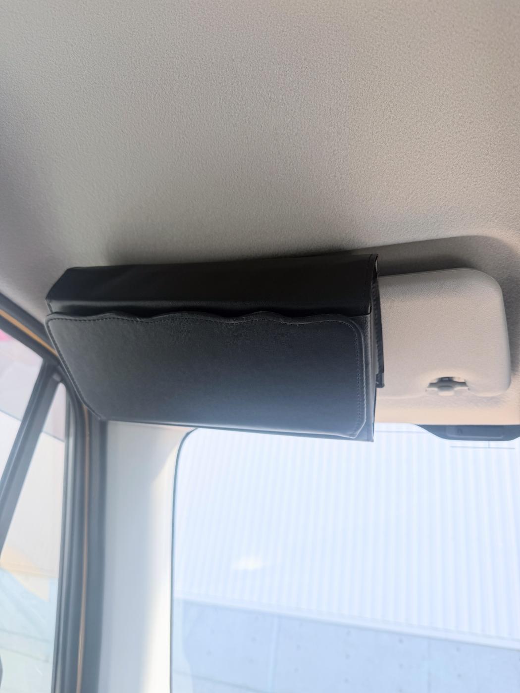 こちらはサンバイザーに取り付けるタイプなので、空間を有効活用できて車内がすっきり🧺