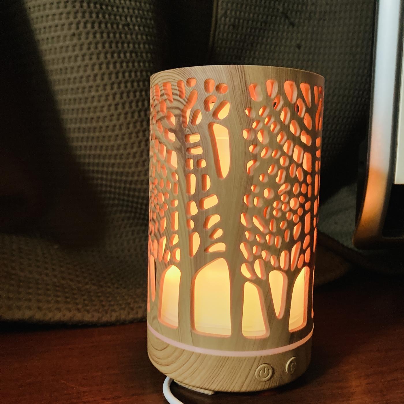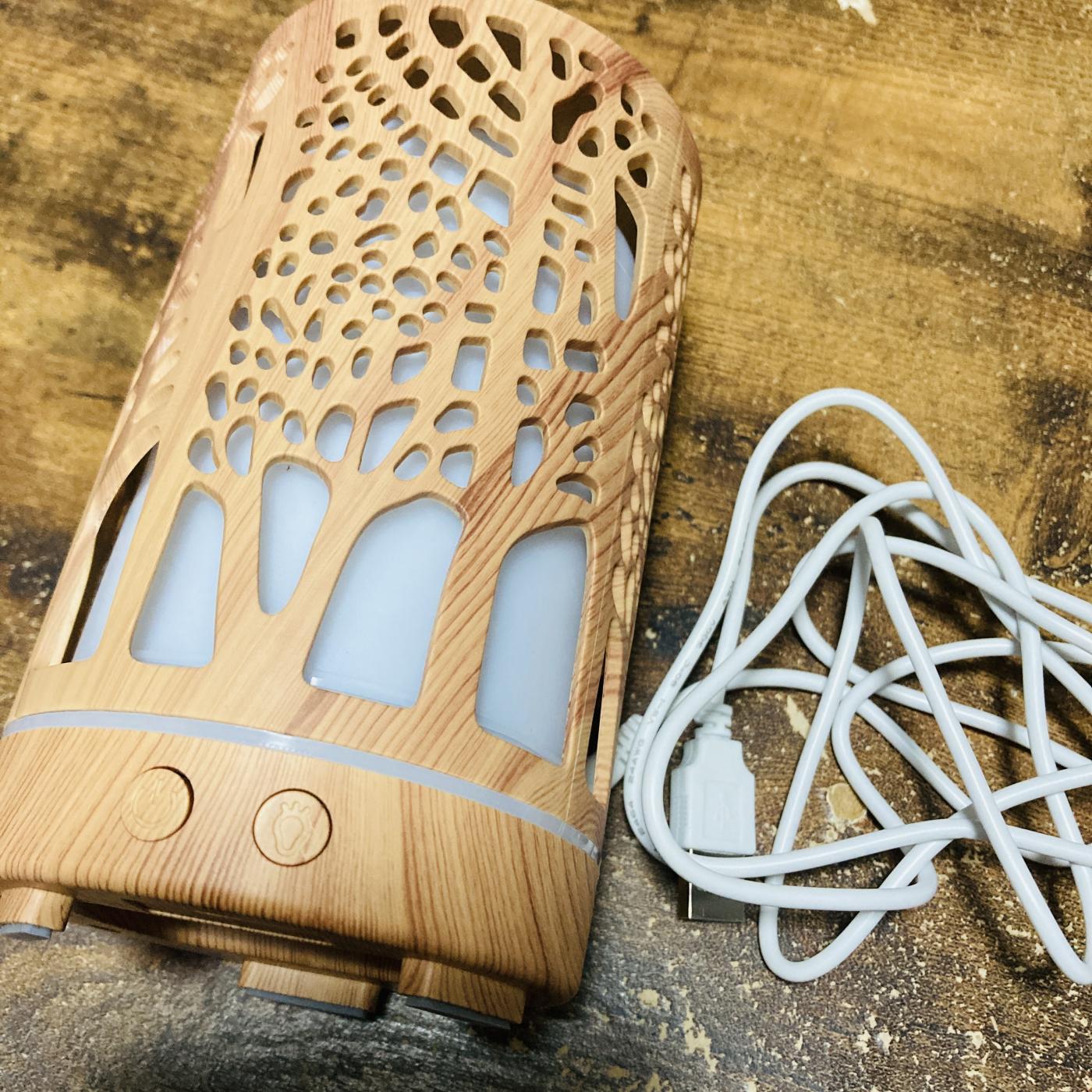 木漏れ日のようなライトが素敵で、みんなに喜ばれそうな雰囲気のあるおすすめディフューザーです。これはお祝いごとやちょっとしたプレゼントにもいいですよね。アダプタで電源をとれるので、こじんまりした場所でも使えるがすごくいいですね。