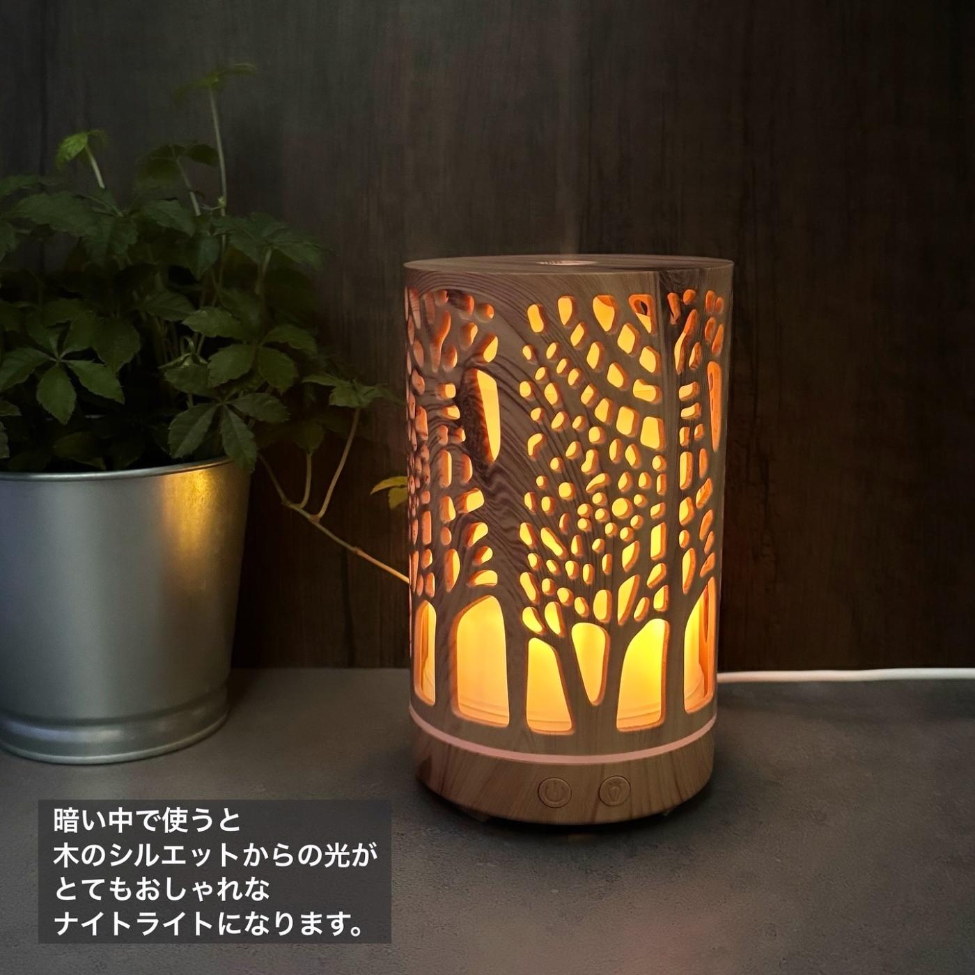 木のシルエットからの光が美しいアロマディフューザー|モニター にこさん
