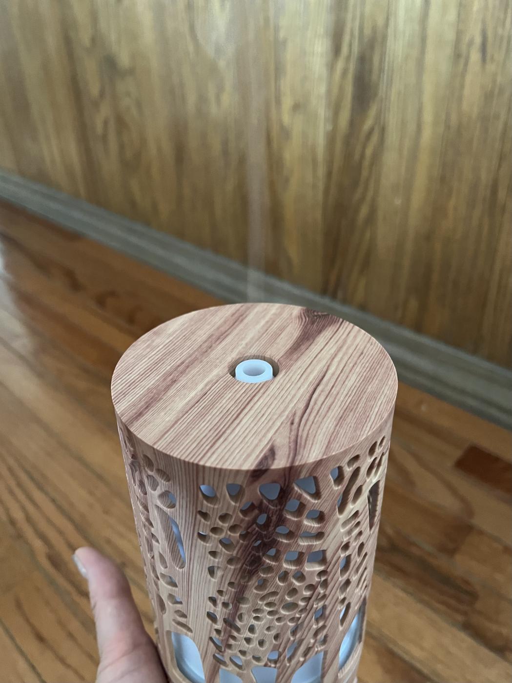 和風、洋風、いろんなインテリアに合いそうなウッド調のデザインのアロマディフューザー。 小さすぎず...
