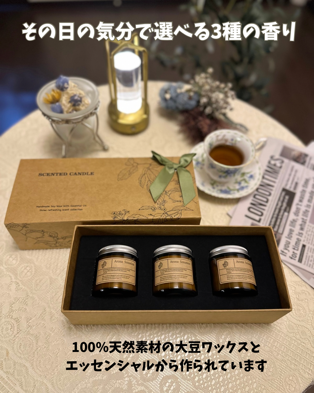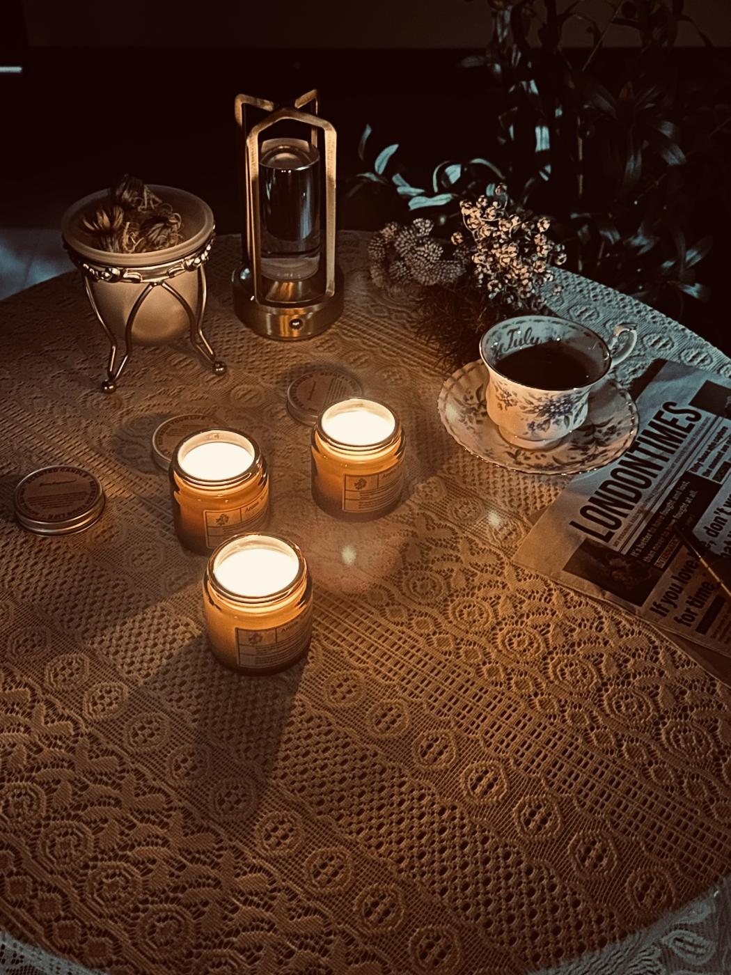 100%天然素材の大豆ワックスとエッセンシャルオイルから作られているアロマキャンドル🕯️