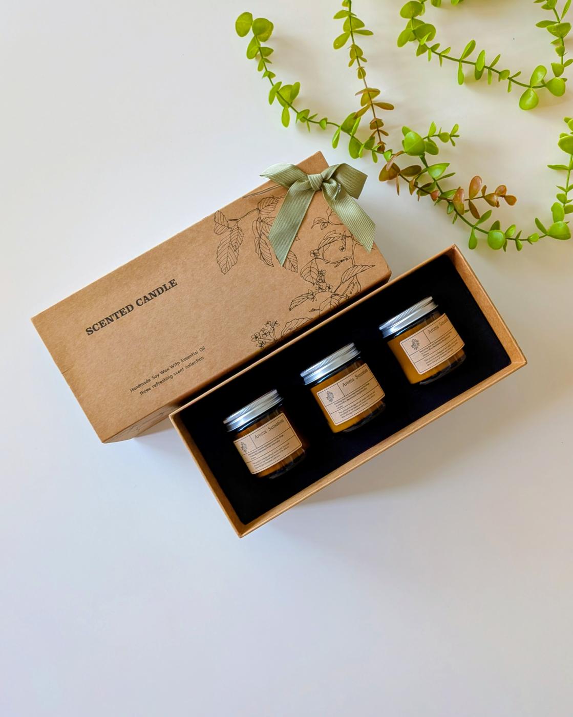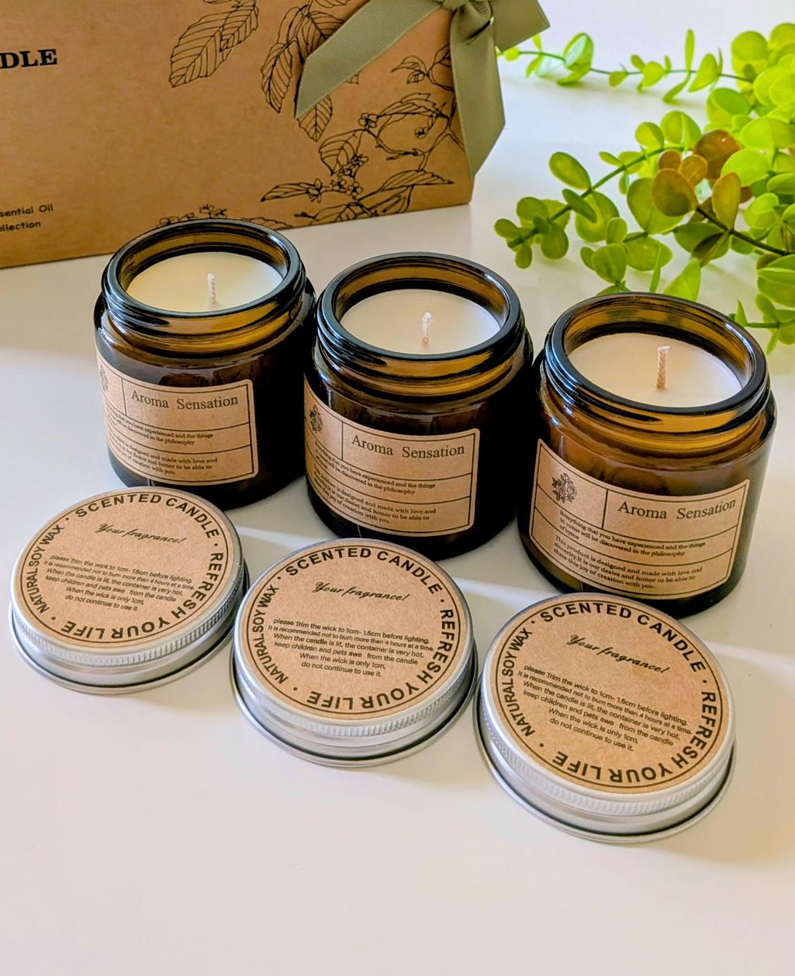 このギフトセットの魅力は、100%天然素材で作られていること。大豆ワックスとエッセンシャルオイルだけで、石油由来のパラフィンは不使用。素材そのものの質感や香りをじっくり楽しめます。