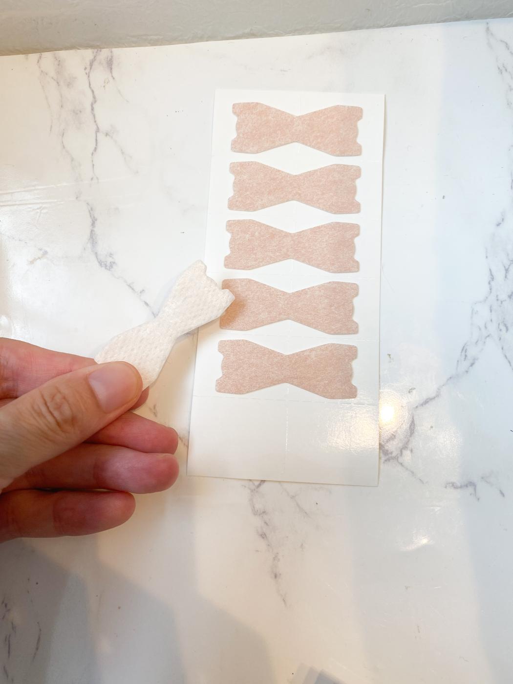 テープのデザインで、特によかったなと思うのはテープの中央が「V字」になっているので、貼るときに鼻の中央が合わせやすくなっていること!