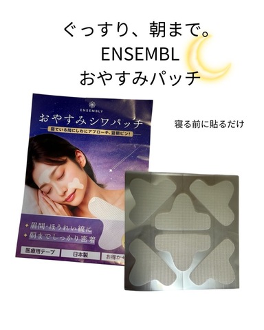いつものスキンケアのあとに貼って寝るだけでの ENSEMBLY おやすみシワパッチ しわ伸ばしテープです ...