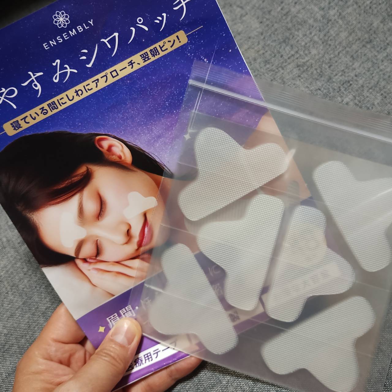 ENSEMBLY おやすみシワパッチ しわ伸ばしテープを お試しさせて頂きました。 寝方が良くないのか、...