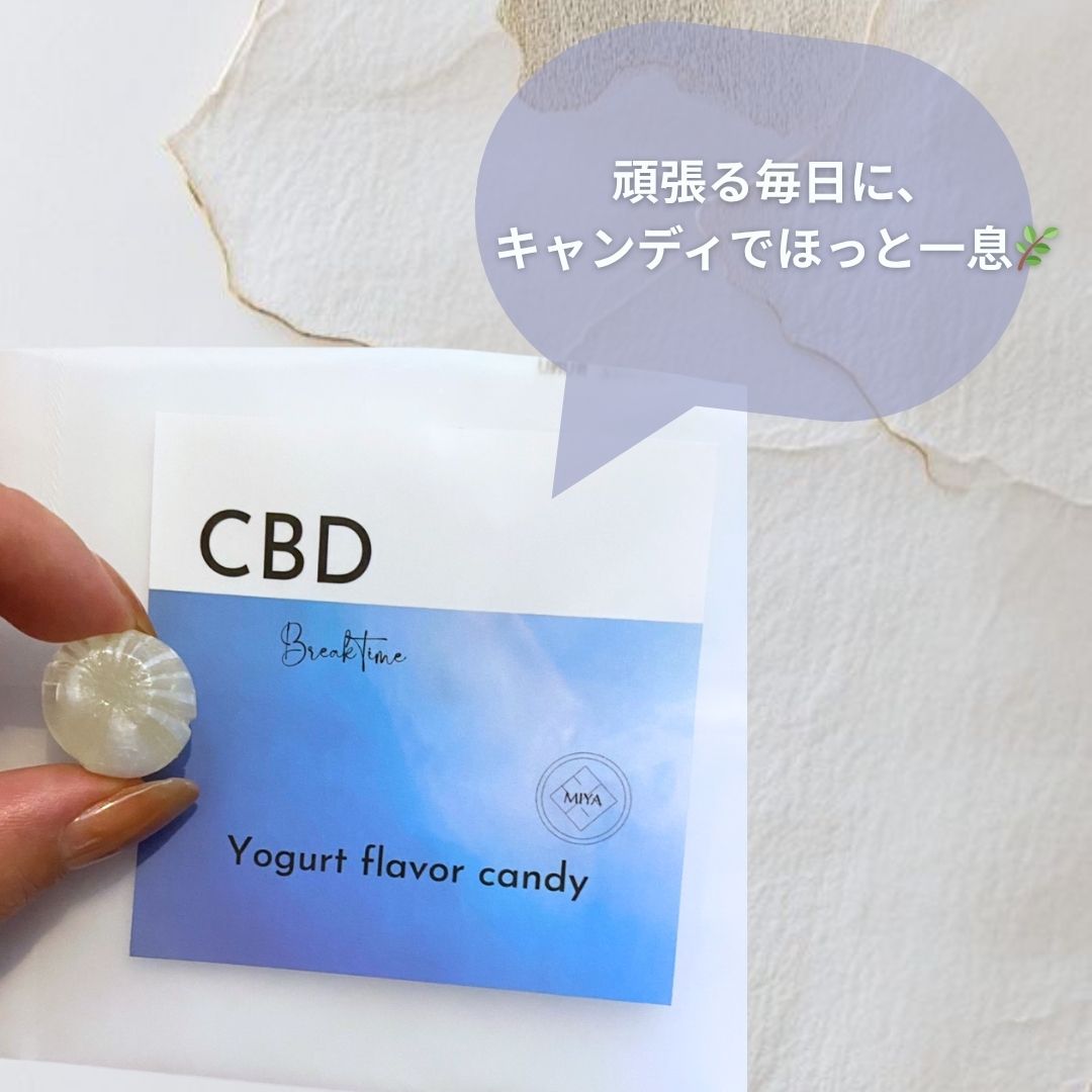 CBDというとオイルやサプリのイメージがありましたが、キャンディタイプは初めて!ヨーグルト味はとてもやさしい甘さで、すっきりとした口どけが心地よかったです。