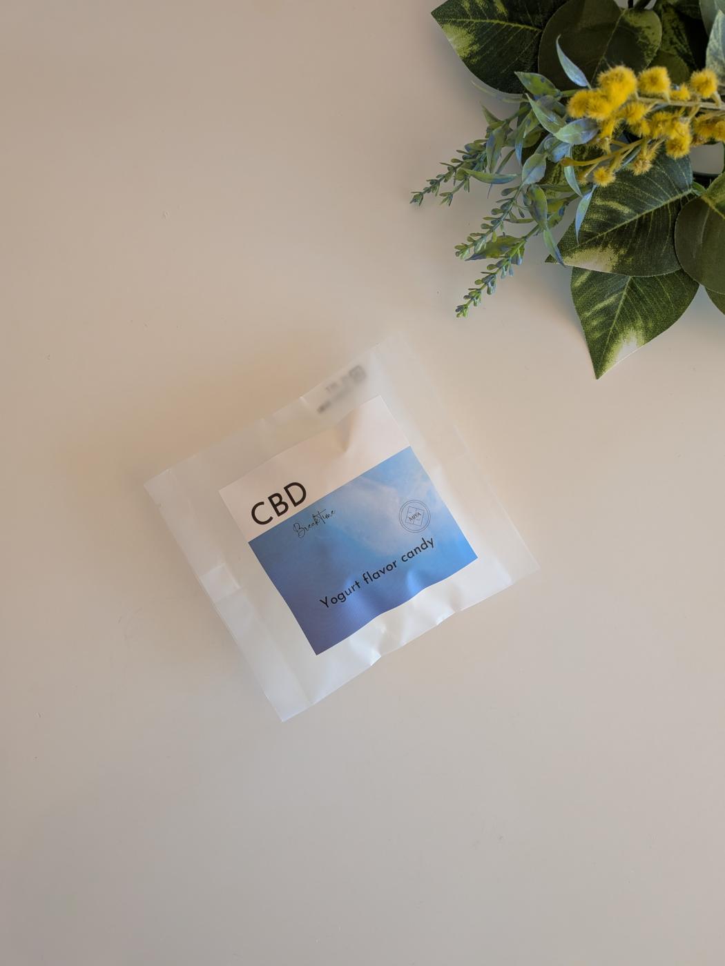 1粒にCBDを20mg配合しているキャンディで、やさしいヨーグルト風味が特徴です。青いラベルで爽やかな印象のシンプルなパッケージも目を引きます。
